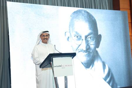 In a collaborative effort to mark this occasion, Indian entrepreneur and philanthropist Mr. Rizwan Adatia, through his “Human for Humans” initiative, joined forces with the Emirates Scholar Center for Research and Studies (ESRC) to celebrate the 155th anniversary of Mahatma Gandhi’s birth at Swissotel in Dubai. The event was held under the esteemed patronage of H.E. Dr. Abdullah Belhaif Al Nuaimi, Chairman of the Sharjah Consultative Council and Chancellor of Emirates Scholar Center for Research and Studies.