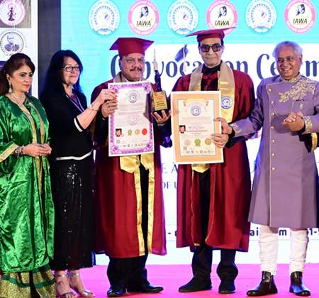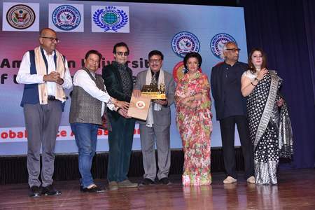 Mr. Vinod Anand now know as Dr.Vinod Anand has  been Honoured with Honourary Doctorate from the American University by Vice Chancellor Dr. prof HE Madhukrishan,senior Scientist Mrs Tatyana of Kazakhstan, Chancellor of University affiliated by our AUGP USA Scientist in Kazakhstan Ambassador  Dr.Daljeet Kaur Representative of AUGP Asia. The Honourable Guests present at the ceremony  were ACP Sanjay Patil,Veteran Actor Dheeraj Kumar, Deepak Prashar, Prof Dr Jasjit Suri a renowned scientist and AI expert and  many more Dignitaries  were present at the  gala ceremony .