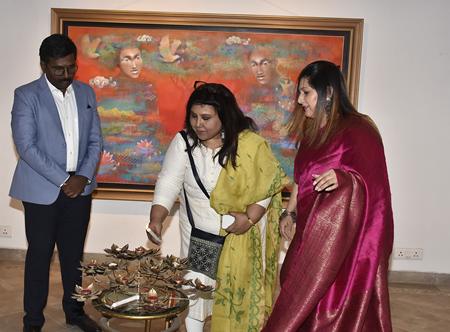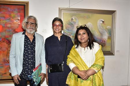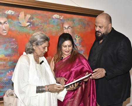 The evening was graced by distinguished guests, including Mrs. Pheroza J. Godrej, renowned theatre personality Dolly Thakore, celebrated artist and writer Prakash Bal Joshi, Dr. Sanjay Bhide, Shri Graham London, Mr. Arun Pawar, Mrs. Seema Pawar, Mr. Shyam Babu N., Mrs. Saral N and Anju Sehgal. Also present were the artist Shampa Sircar Das and the curator of the show, Aarti Naik, who brought this beautiful exhibit to life and provided detailed explanations of the artworks on display. Noted photographer and documentarian Sanjay Das also attended, further enriching the evening with his presence.