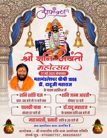 The birth anniversary of Shani Dev will be celebrated as Shani Jayanti on Tuesday, 27 May 2025 with great pomp at Gajasin Shani Dham –
