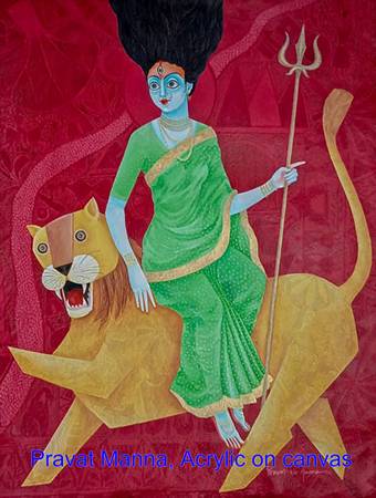 The group show “UJJAL” displays paintings and sculptures by six contemporary Indian artists: Bappa Maji, Pravat Manna, Subrata Paul, Sudeshna Sil, Sudip Biswas, and Tanmoy Hazra.